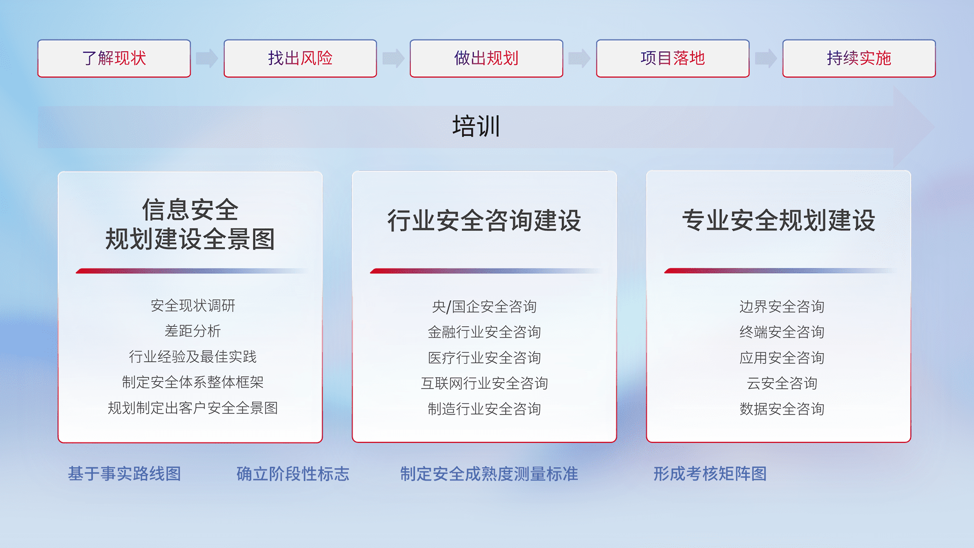 针对客户行业特性,,,将宏观的安全战略和需求,,,通过专业的交付服务,,,实现项目落地,,,为客户提供标准规范的集成交付服务。。。
